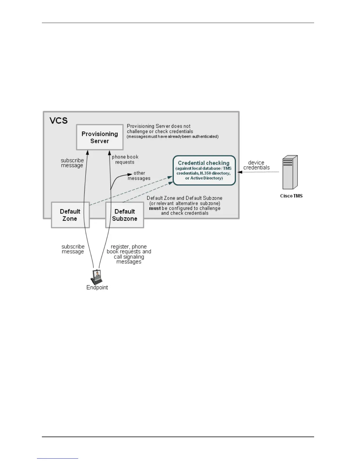 authenticated at the zone or subzone point of entry into the VCS. The Provisioning Server does not do its