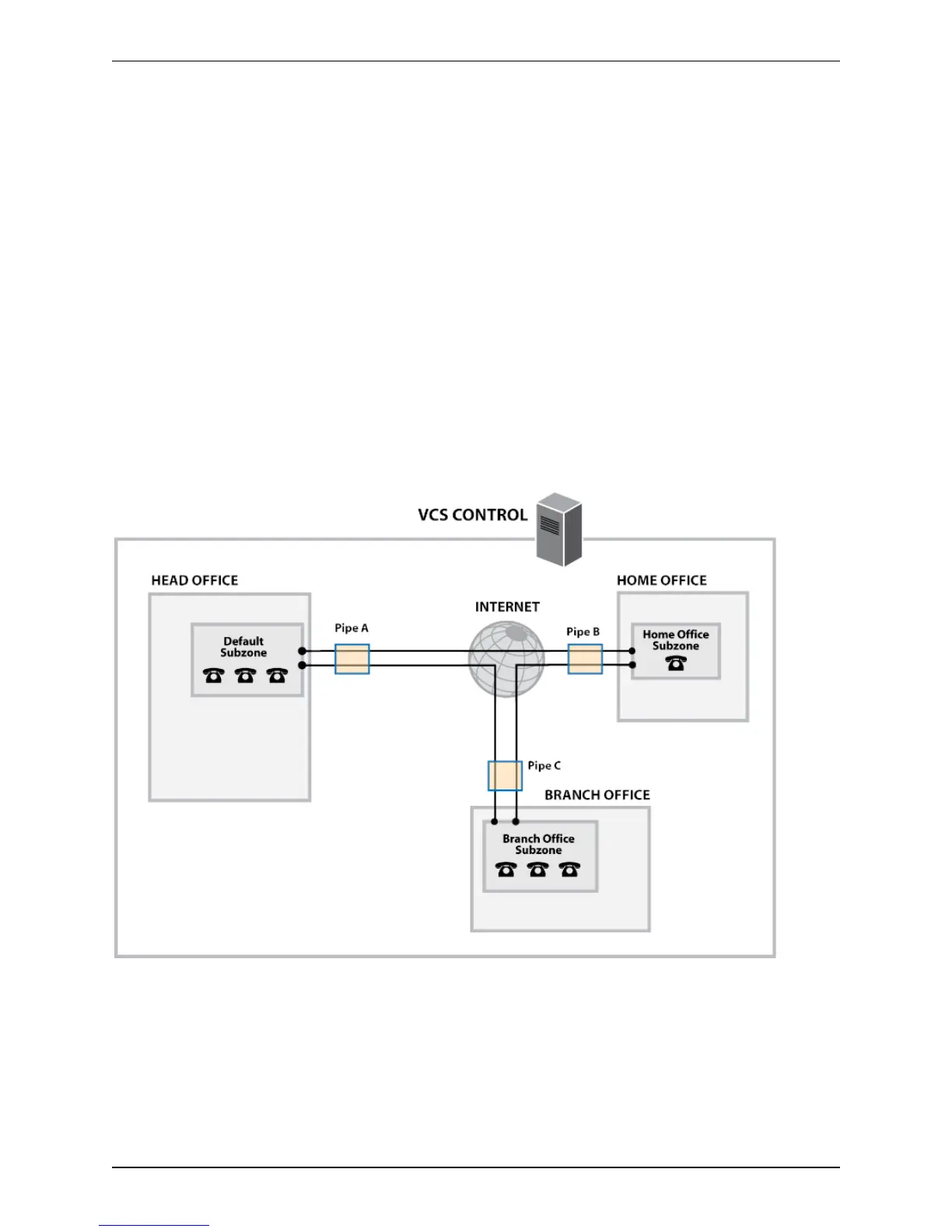 endpoints in the Head Office register with the VCS Control, as do those in the Branch and Home offices.