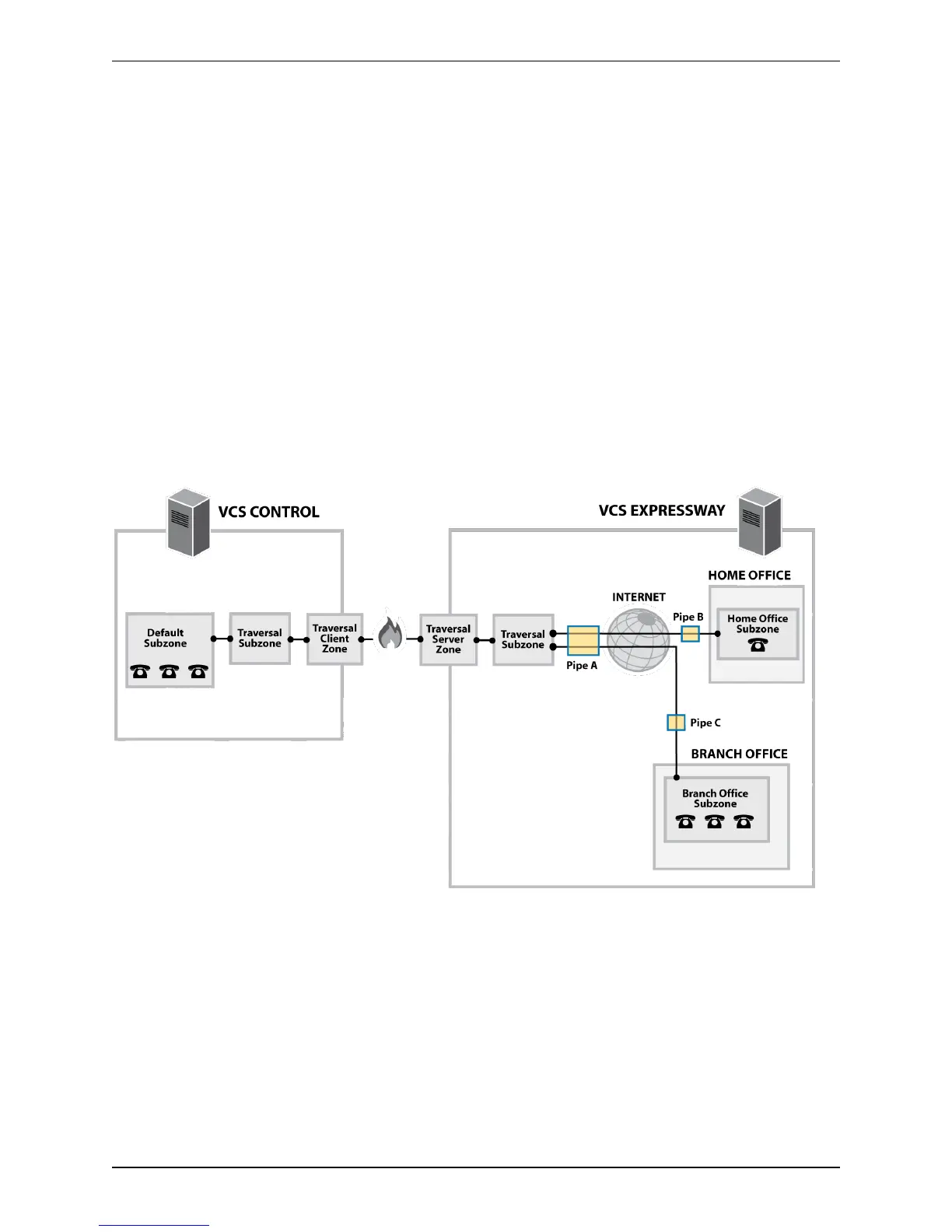 the VCS Expressway’s Traversal Subzone, with pipes placed on each link. All calls from the VCS
