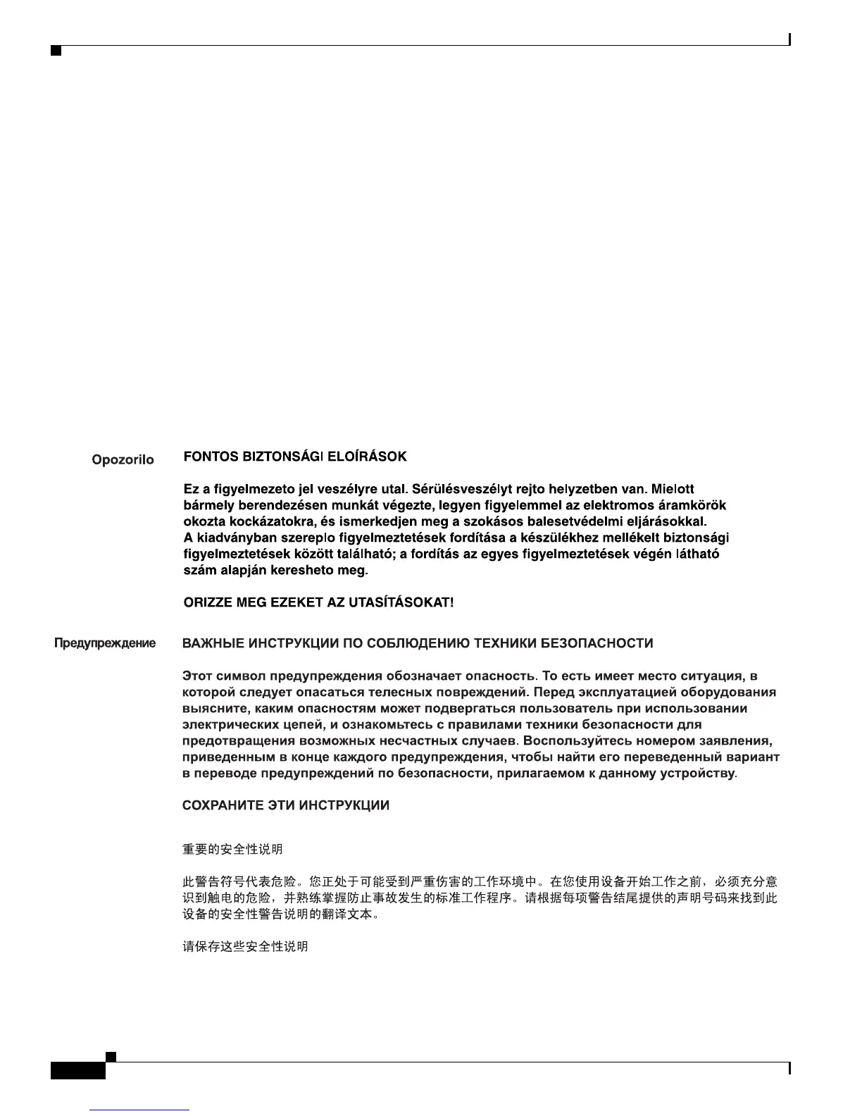 varje varning för att hitta dess översättning i de översatta säkerhetsvarningar som medföljer denna