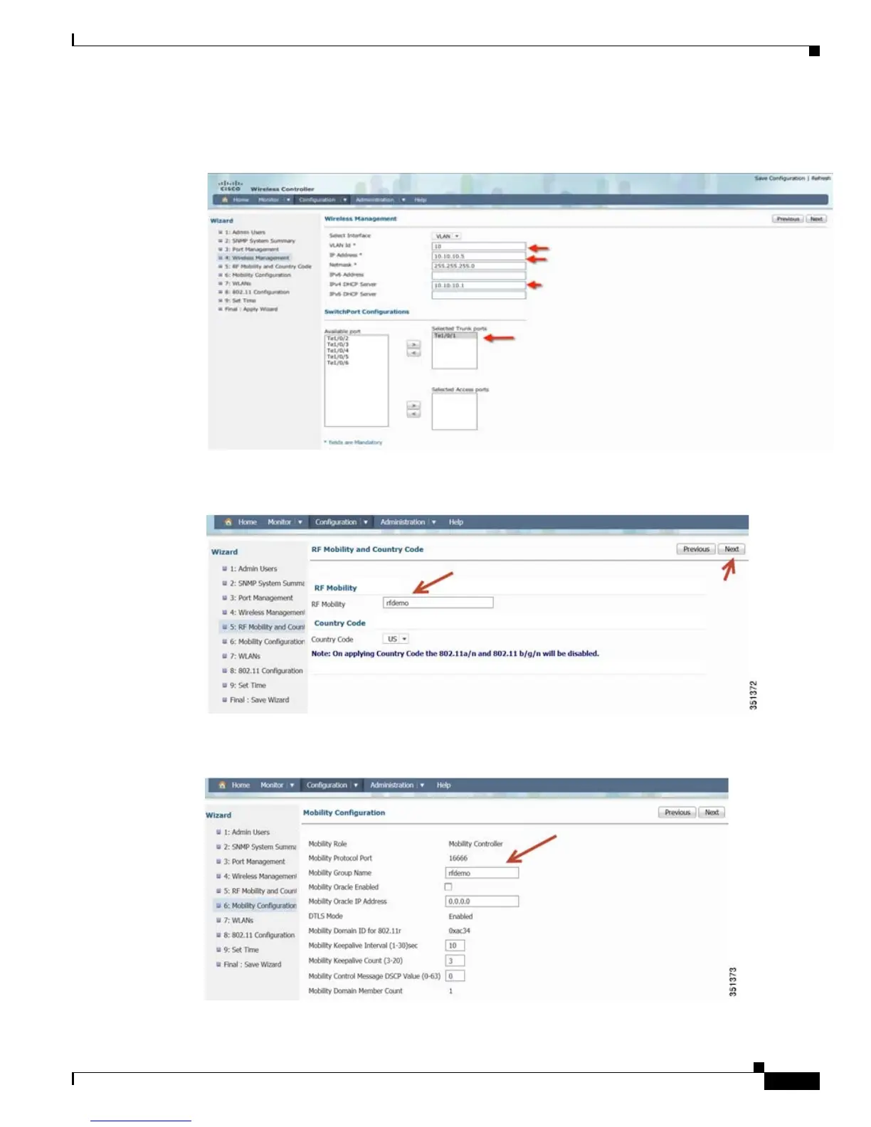 Step 8 RF Mobility and Country Code settings—Here, you can enter the RF Mobility configuration and select