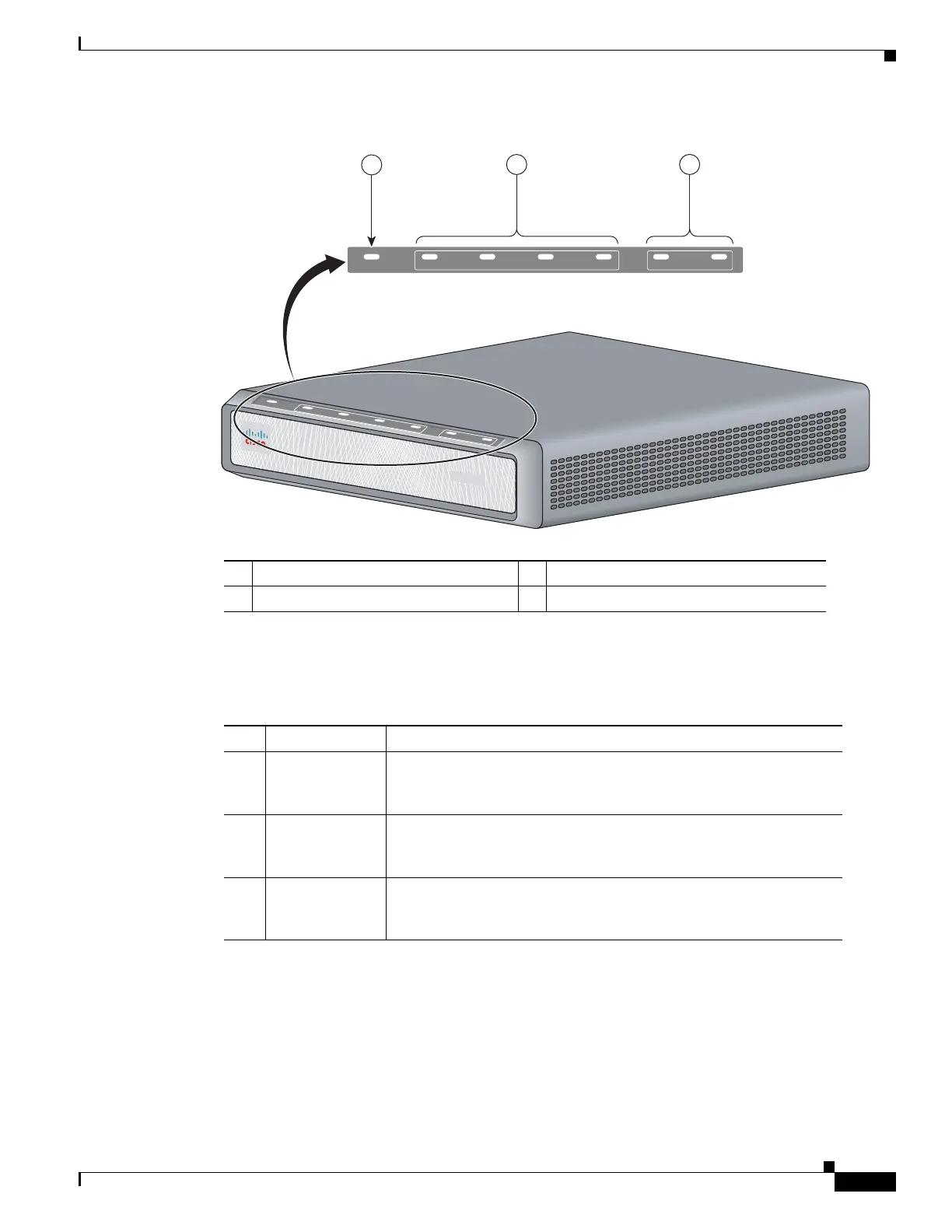 Table 1-1 Cisco VG202, Cisco VG202XM, Cisco VG204, and Cisco VG204XM LEDs