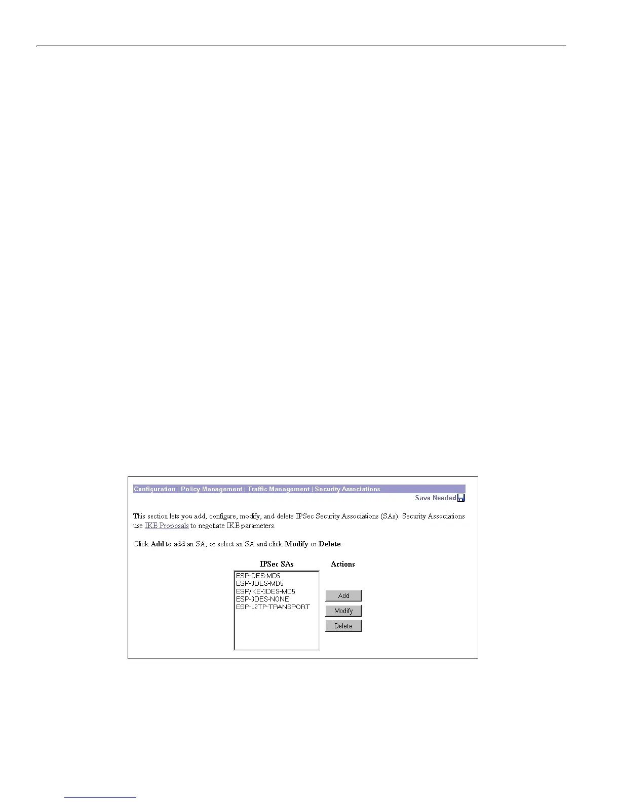 Figure 13-10: Configuration | Policy Management | Traffic Management | Security Associations