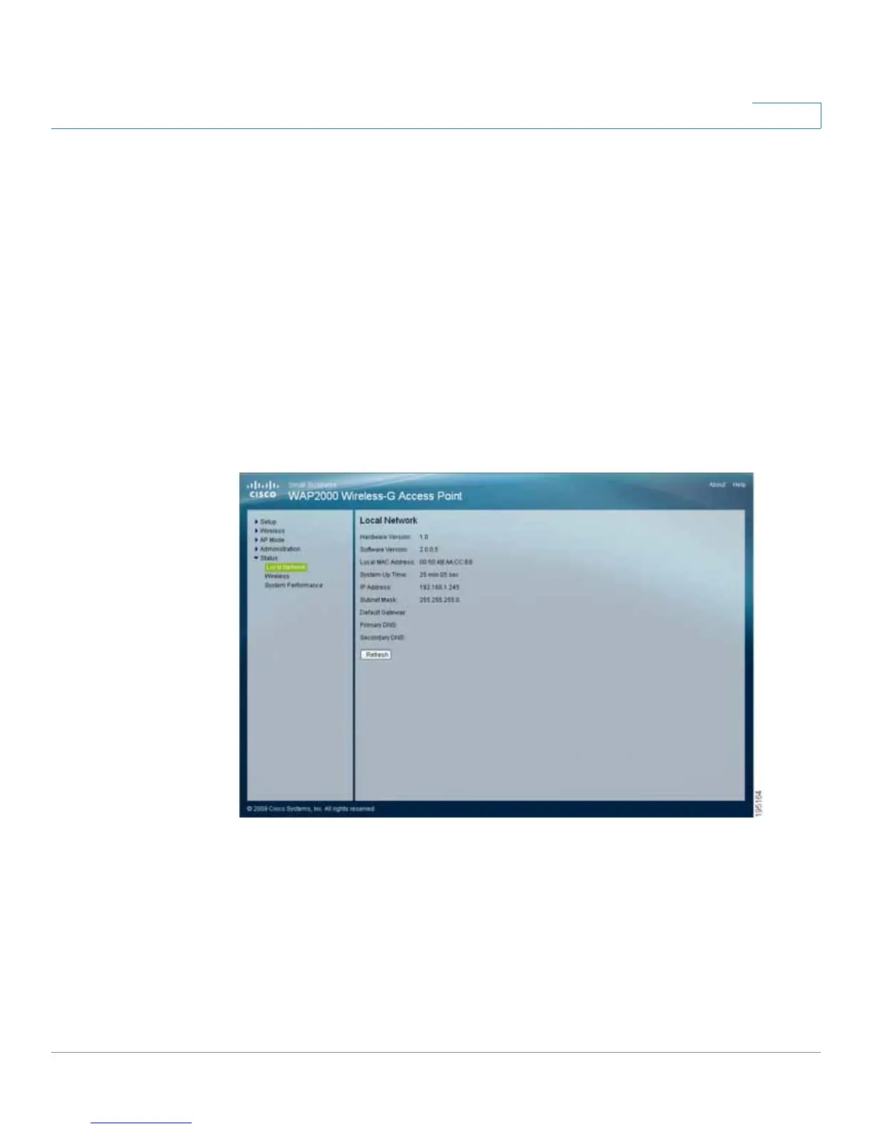 The Status > Local Network window displays the access point’s current status