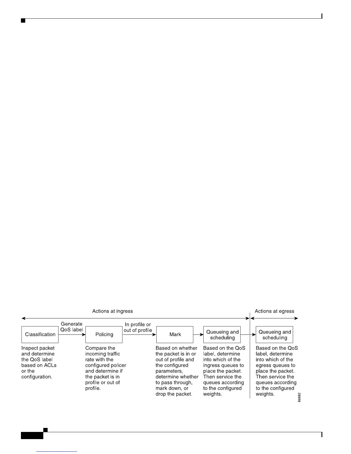 Figure 32-2 shows the basic QoS model. Actions at the ingress port include classifying traffic, policing,