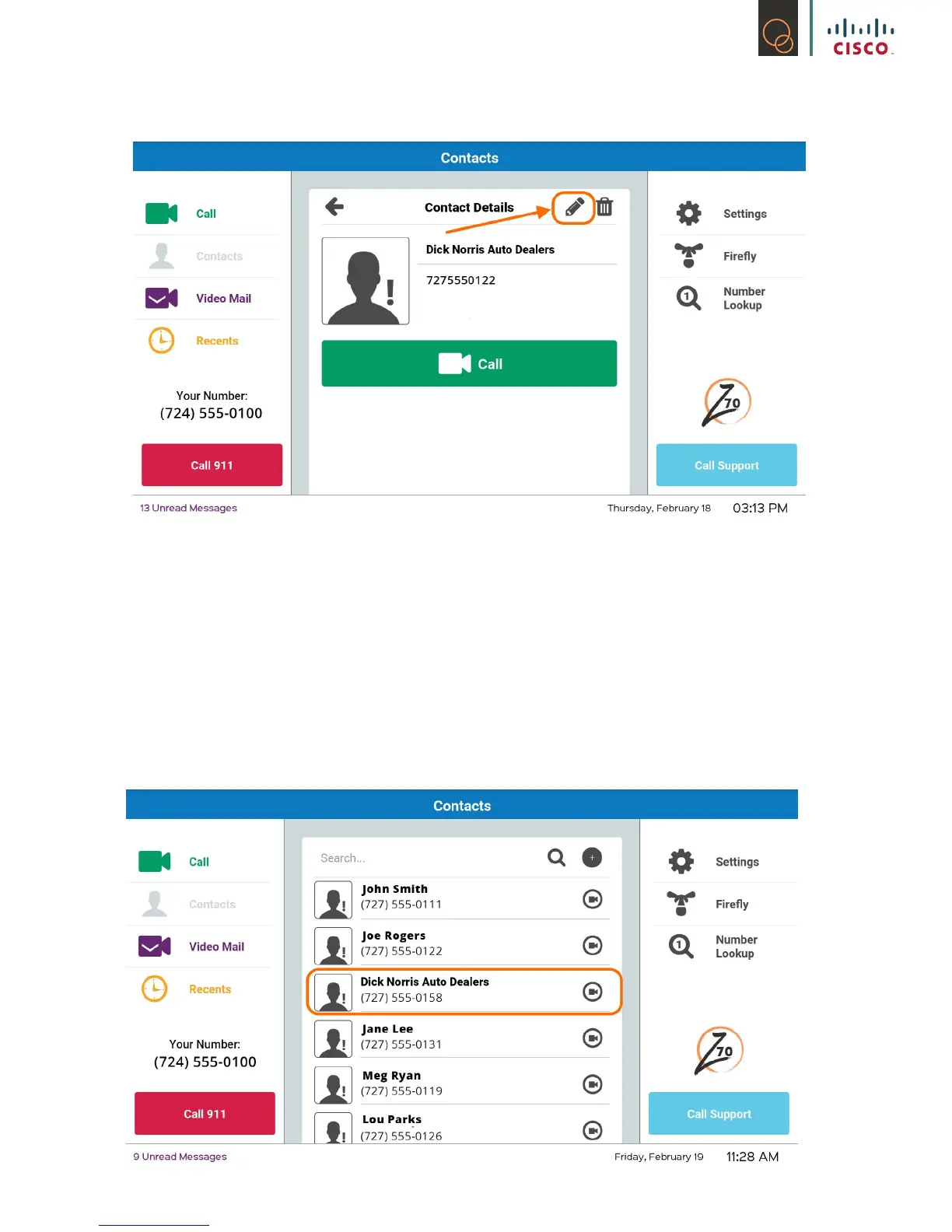 1) Select the specic contact you want to delete