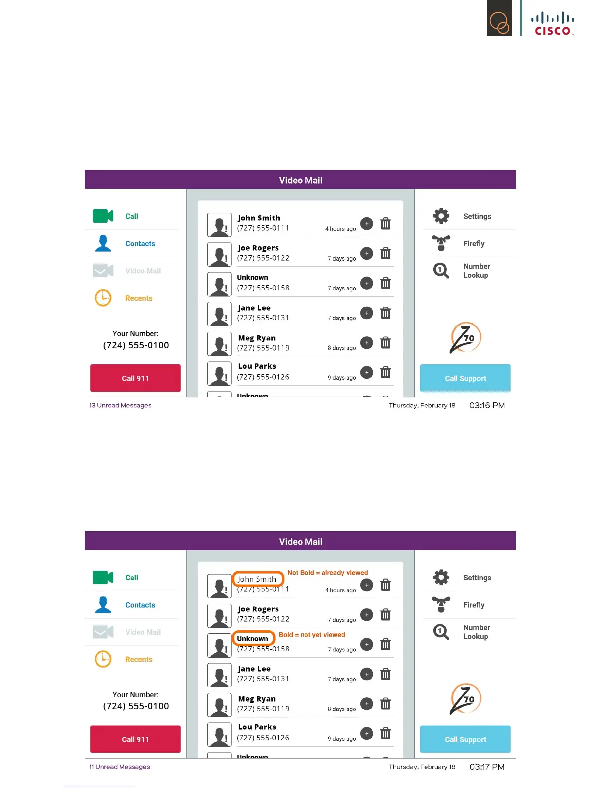 caller’s name or the word “Unknown” is BOLD, this means the message is new and needs to be