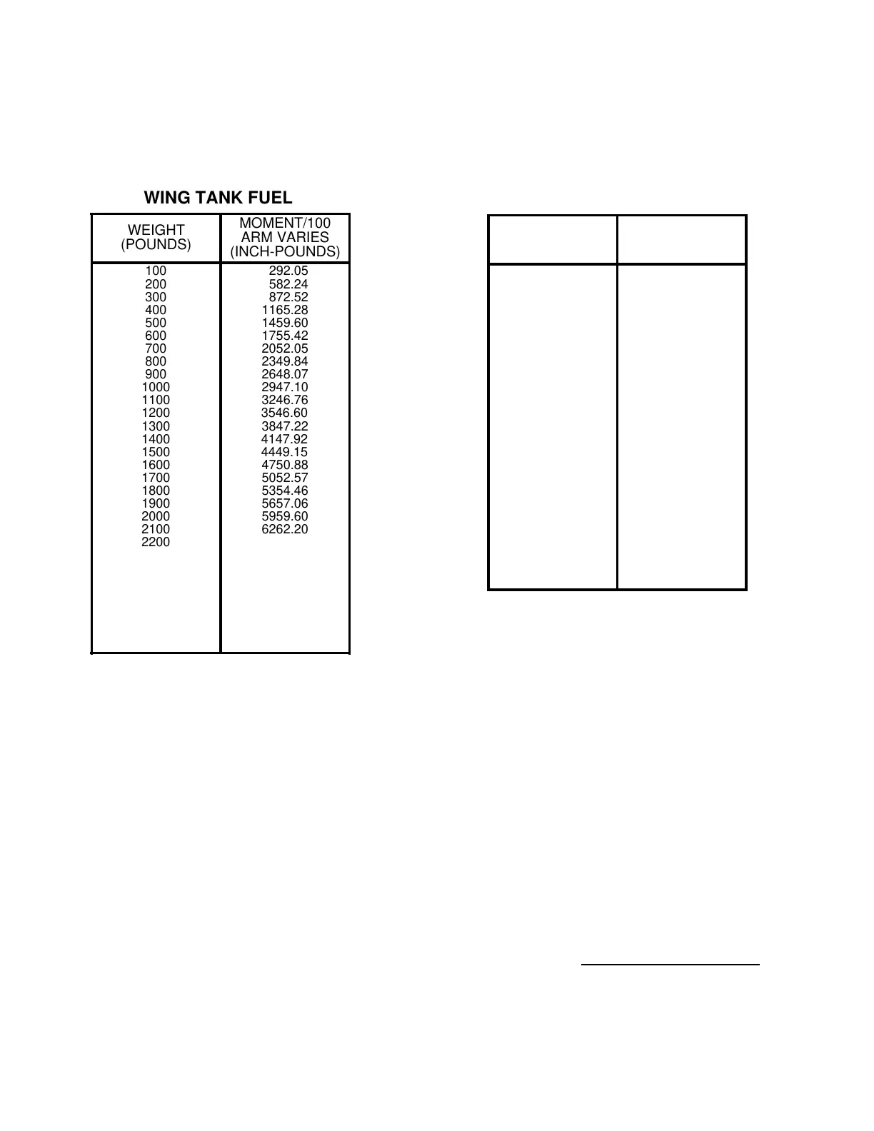 FUEL LOADING WEIGHT AND MOMENT TABLE