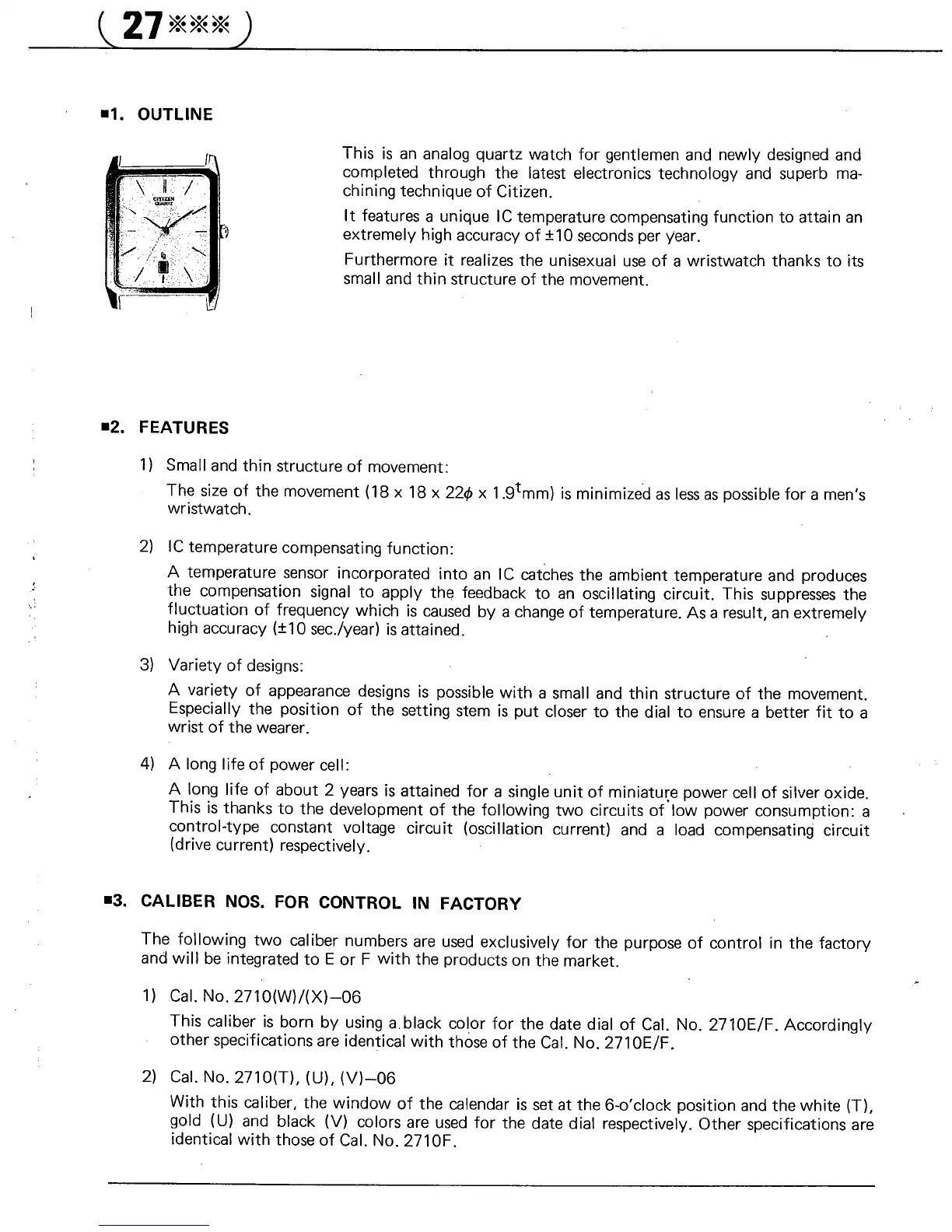 Citizen 27 - CITIZEN QUARTZ Watch Features; IC Temperature Compensating Function; Long Power Cell Life