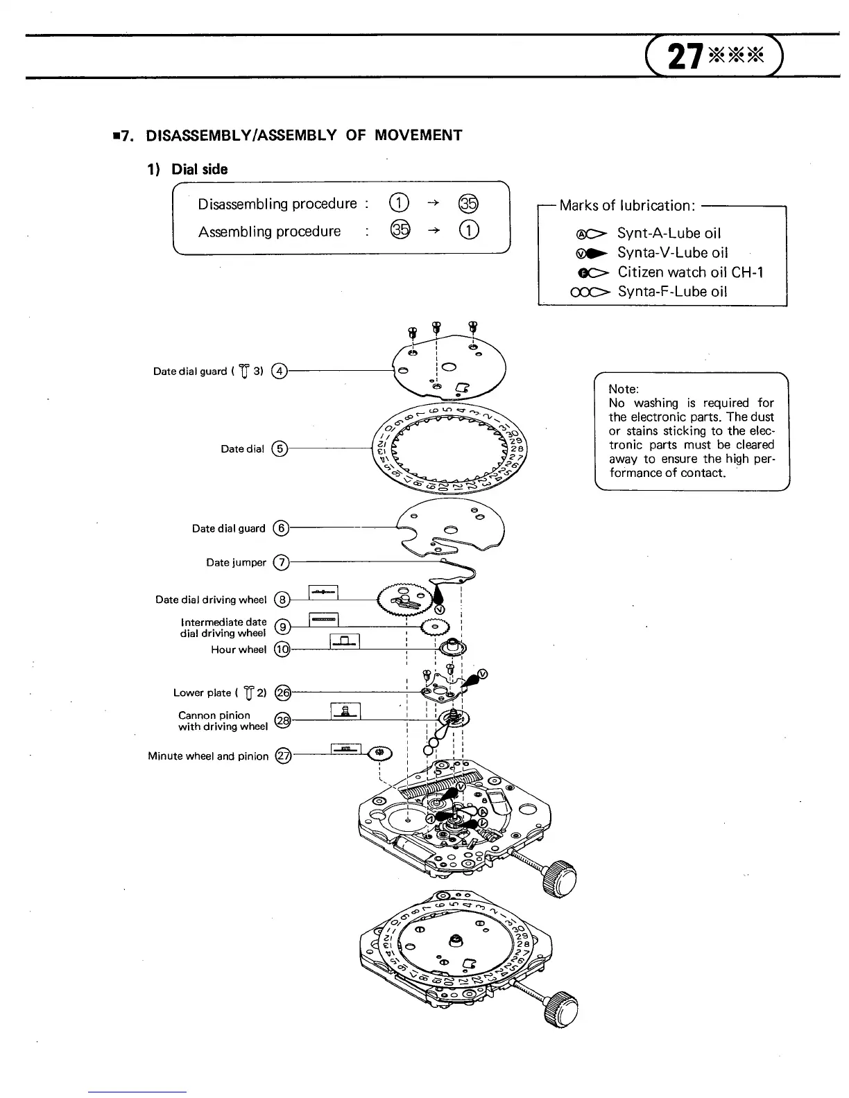 Citizen 27 - Movement Disassembly and Assembly; Dial Side Disassembly and Assembly