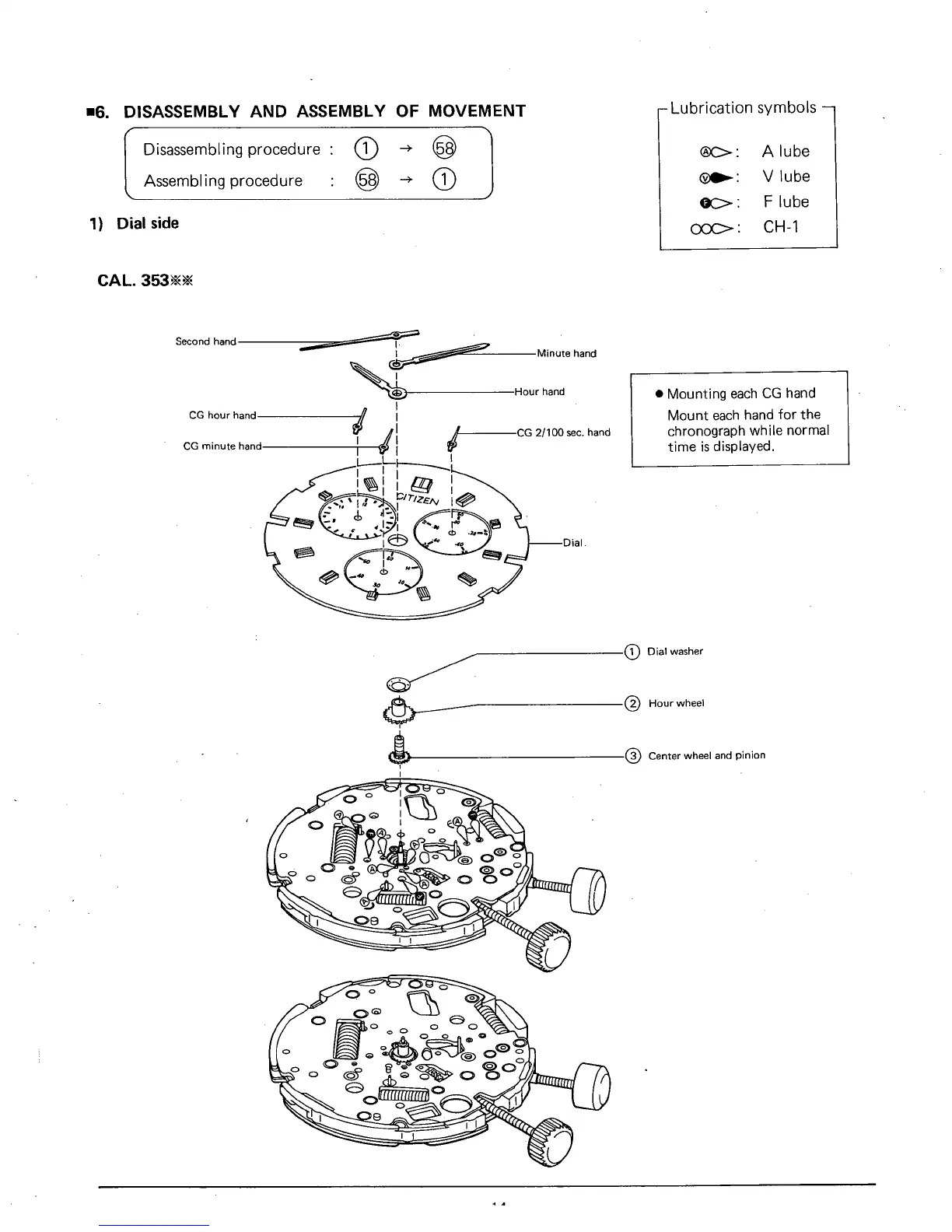 Citizen 3530A - Disassembly and Assembly of Movement; Dial side