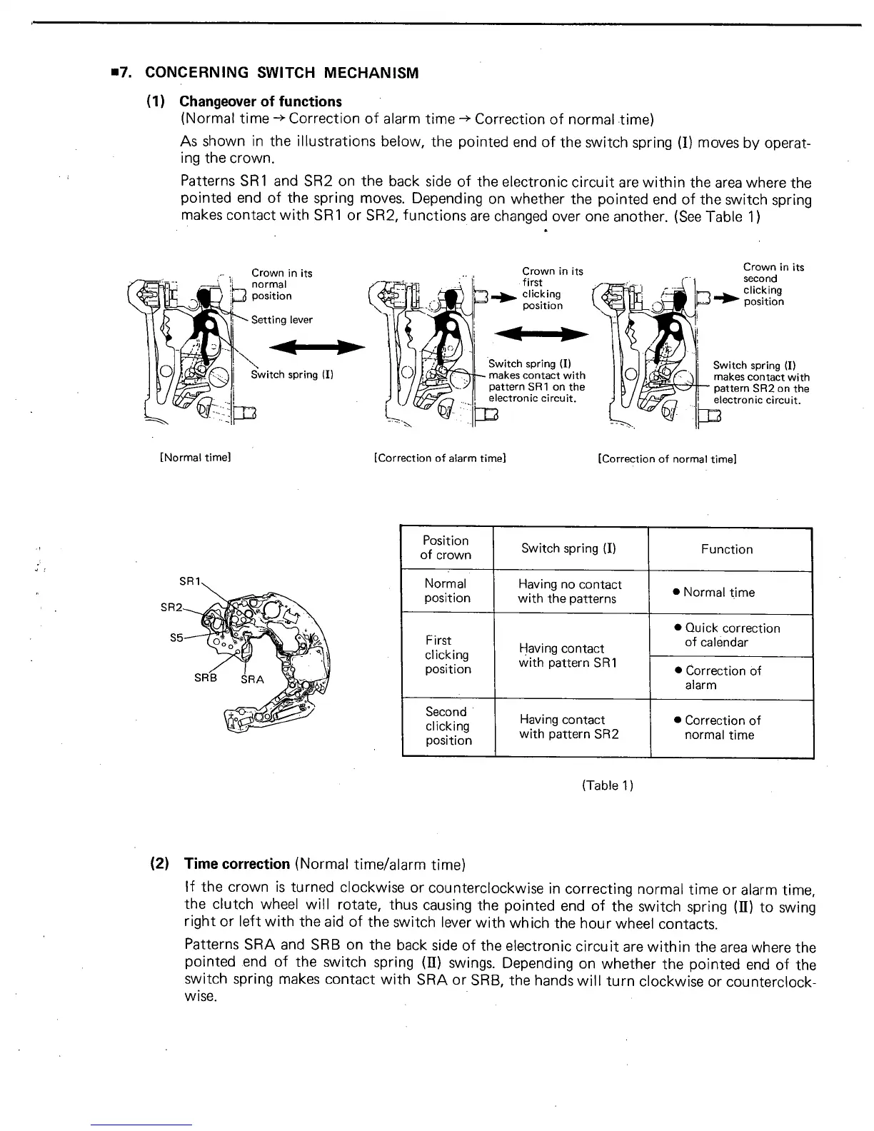 Citizen 3530A - Concerning Switch Mechanism; Changeover of functions; Time correction (Normal time;alarm time)
