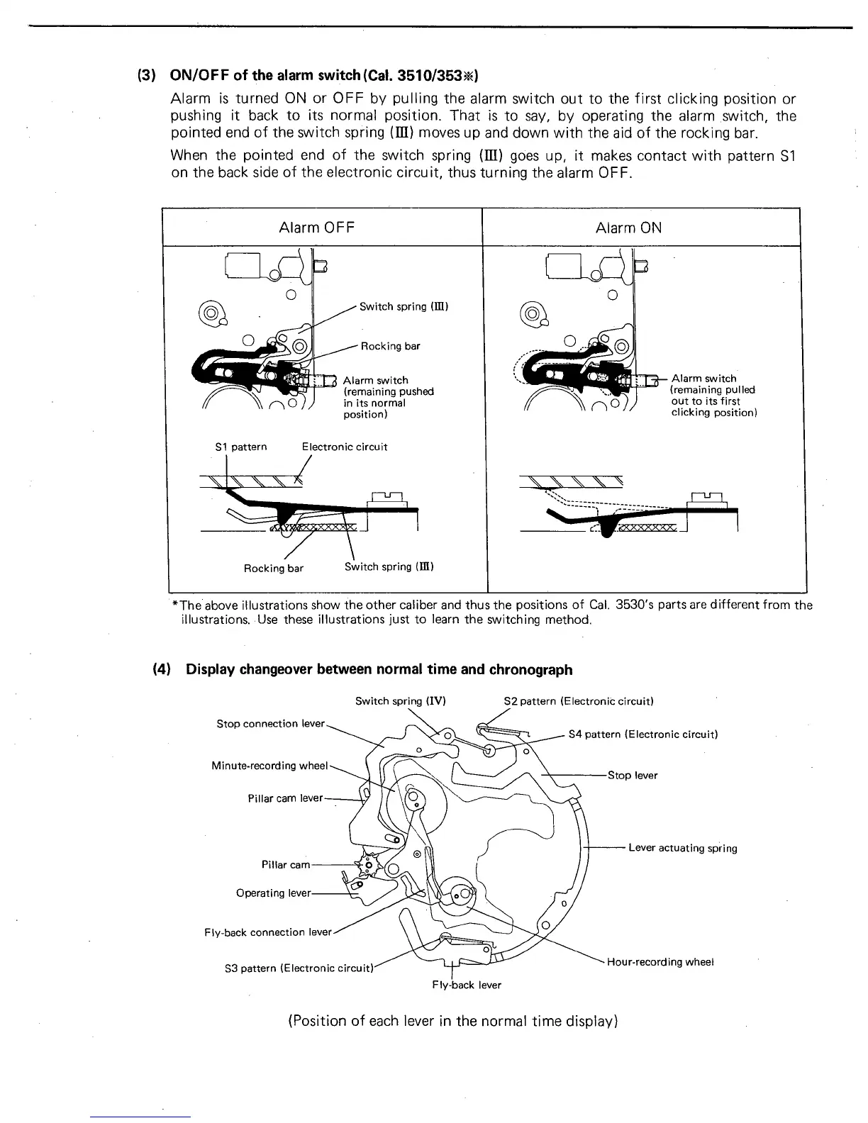 Citizen 3530A - ON;OFF of the alarm switch; Display changeover between normal time and chronograph