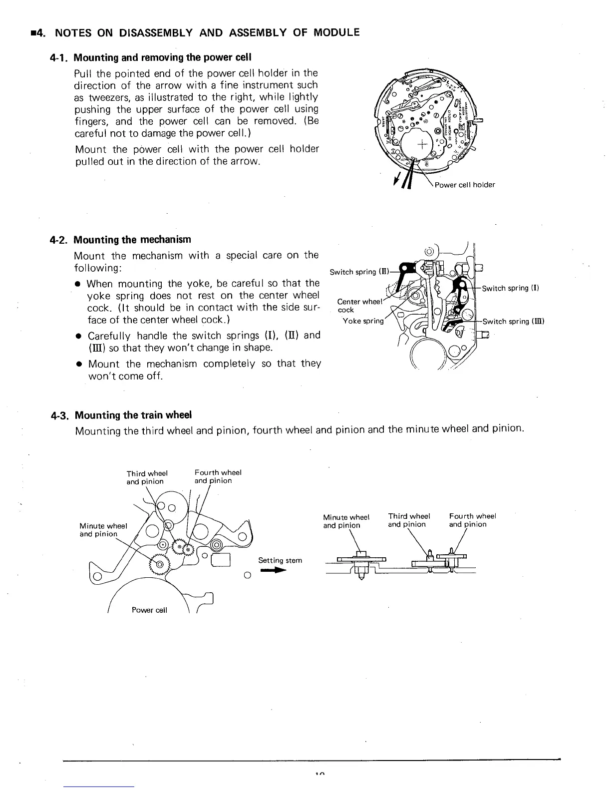 Citizen 3530A - Notes on Disassembly and Assembly of Module; Mounting and removing the power cell; Mounting the mechanism; Mounting the train wheel