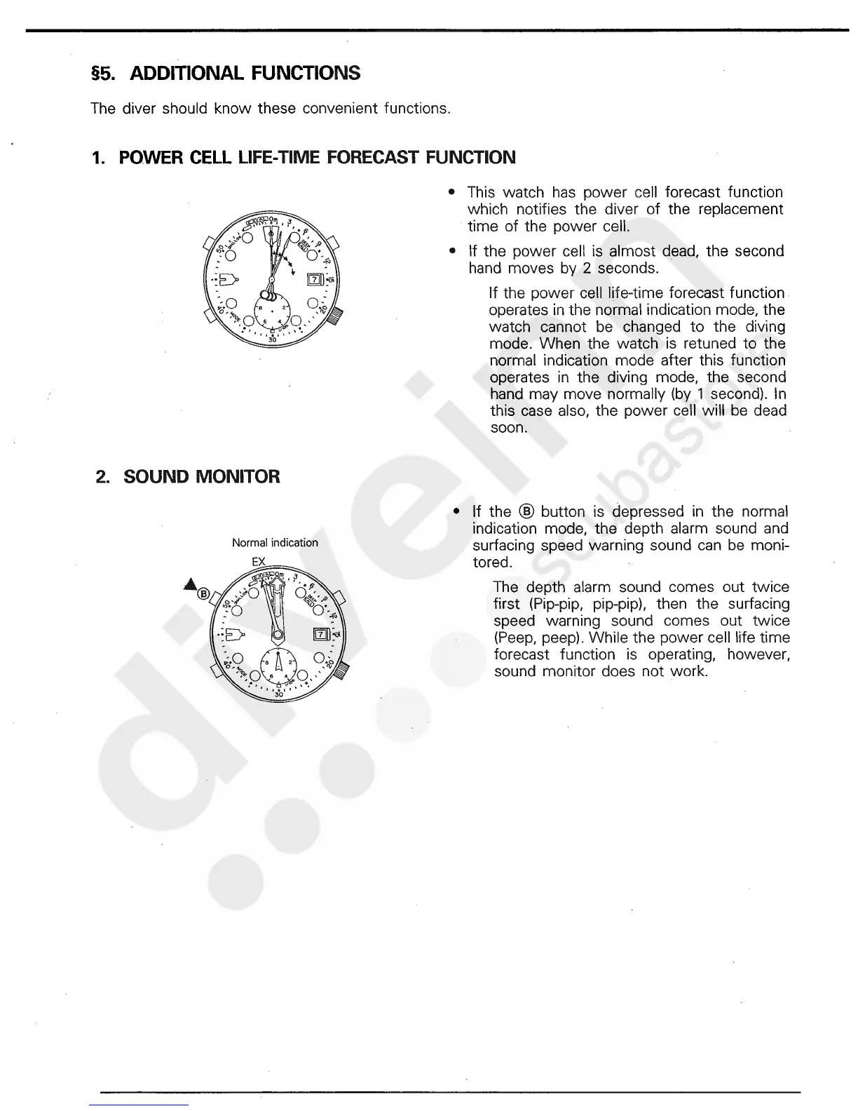 Citizen 5810 - Additional Functions; Power Cell Life-Time Forecast; Sound Monitor