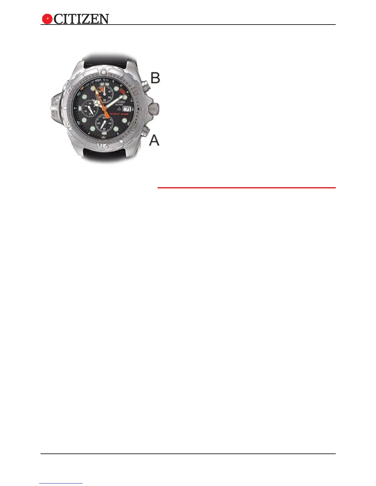 • Press and release B to start or stop chronograph. When stopped, press A to reset hands to zero. If either of the two hands