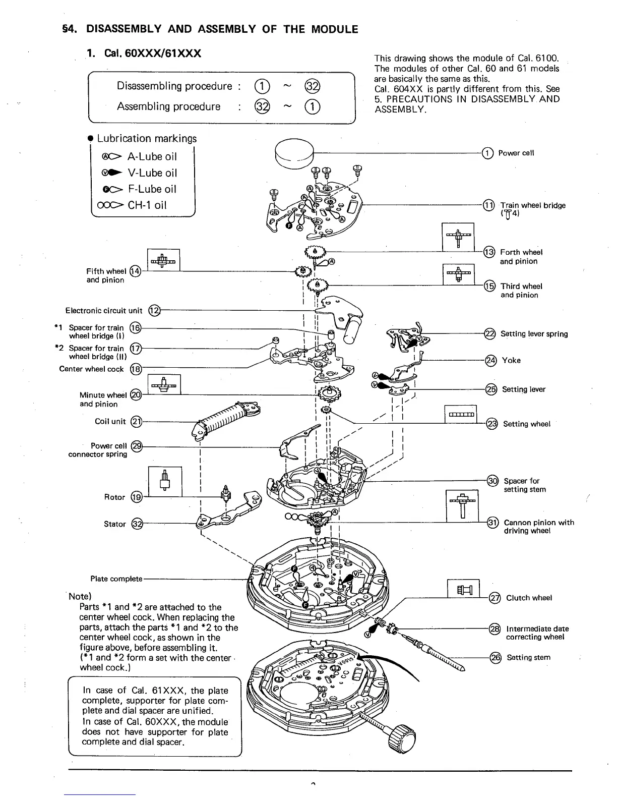 Citizen 6000A-00 - Disassembly and Assembly of the Module; Cal. 60 XXX;61 XXX Module Procedures