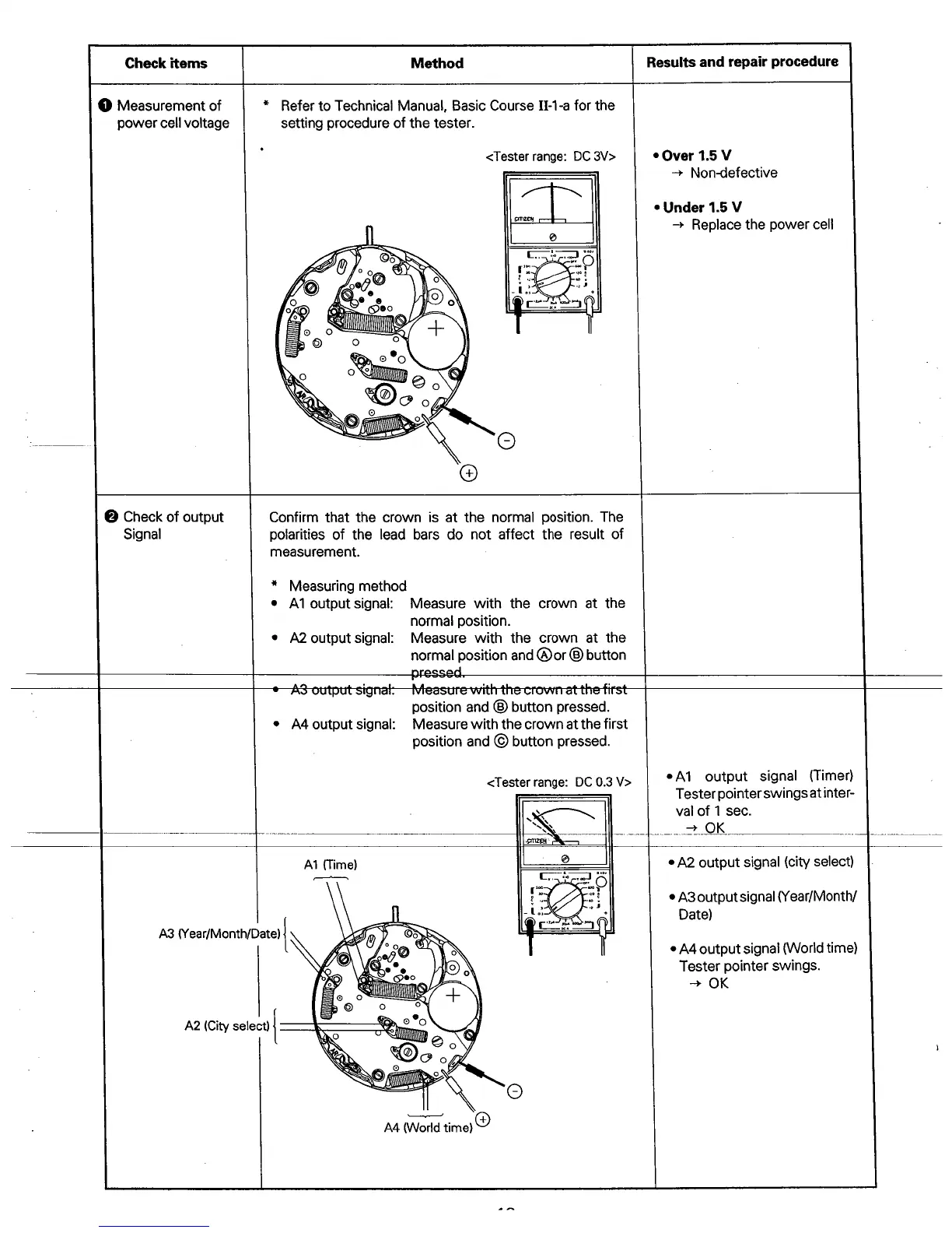 Citizen 6720 - Measurement of Power Cell Voltage; Check of Output Signal