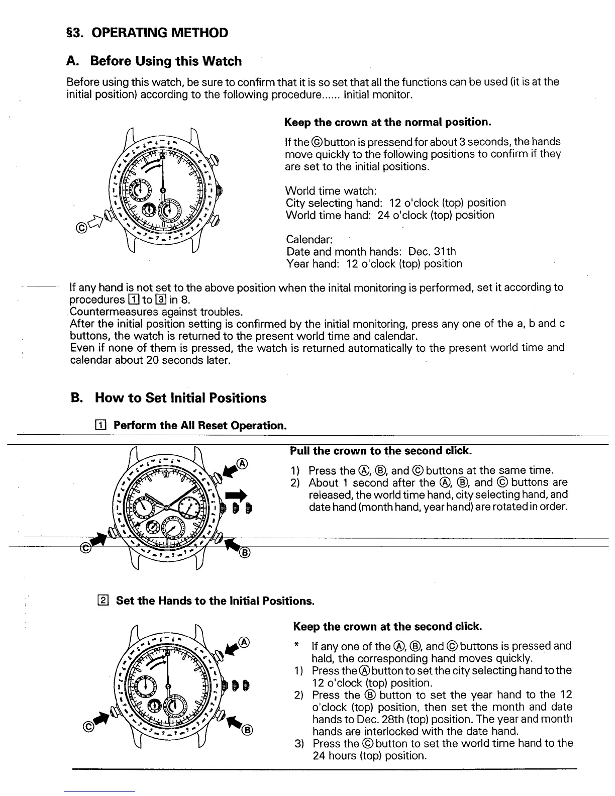 Citizen 6720 - OPERATING METHOD; How to Set Initial Positions
