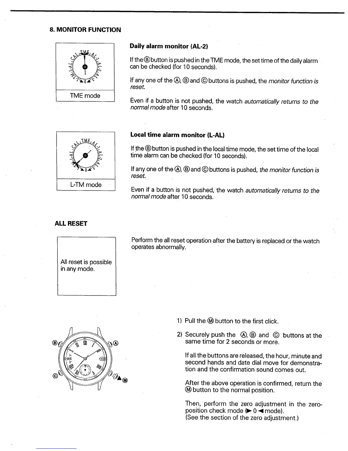 Citizen 6810 - Monitor Function; All Reset; Daily Alarm Monitor; Local Time Alarm Monitor