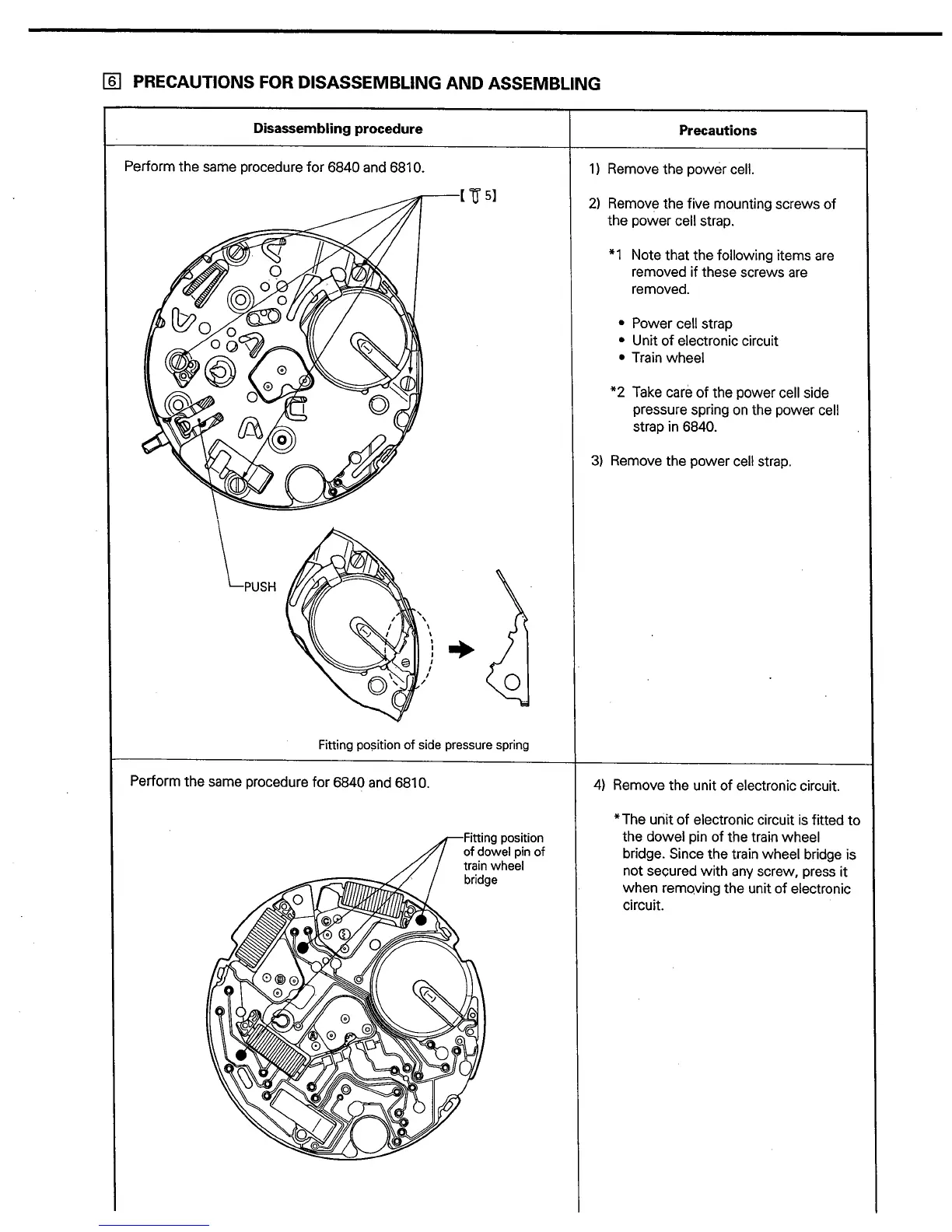 Citizen 6810 - PRECAUTIONS FOR DISASSEMBLY; Disassembly Precautions and Steps
