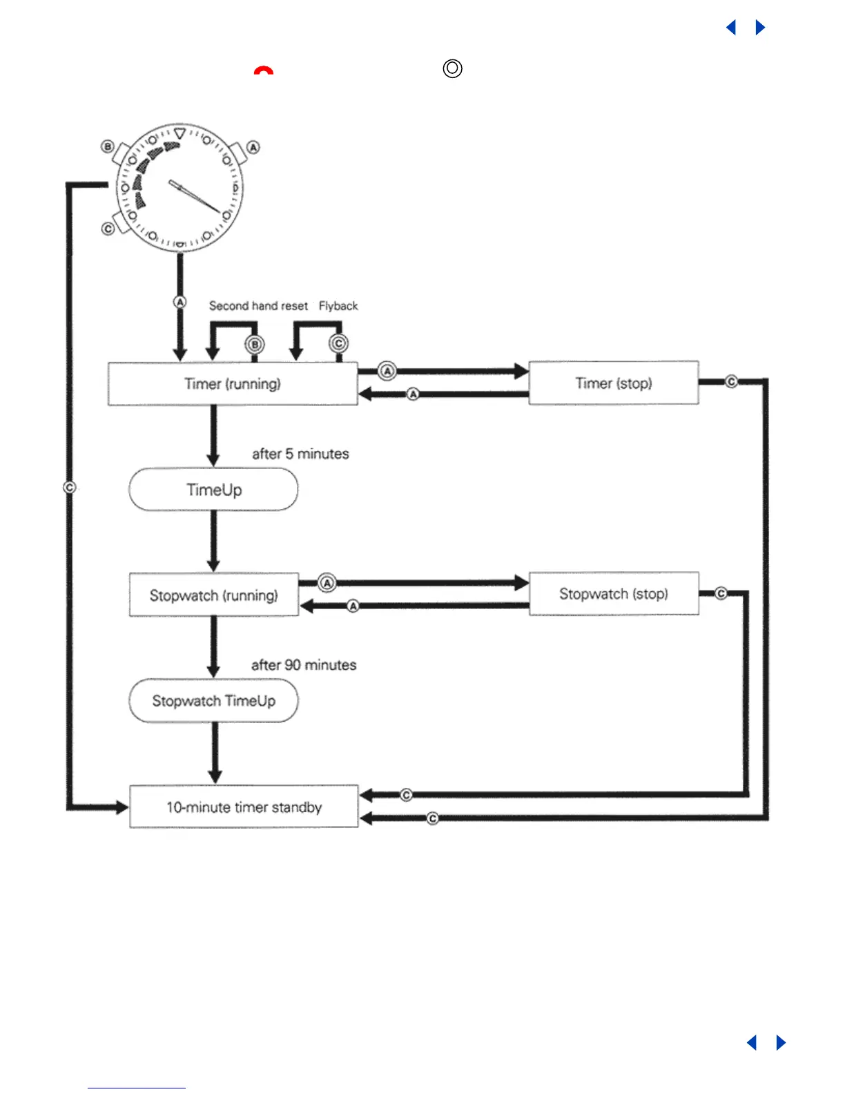 x Elapsed time display changes as watch switches from timer to stopwatch