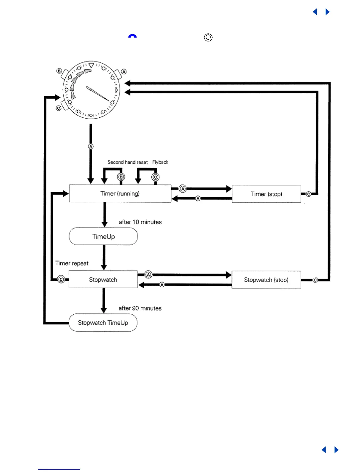 x Elapsed time display changes as watch switches from timer to