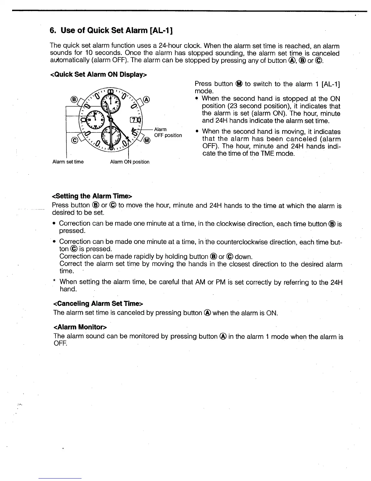 Citizen 6870 - Use of Quick Set Alarm; Quick Set Alarm on Display; Setting the Alarm Time; Canceling Alarm Set Time