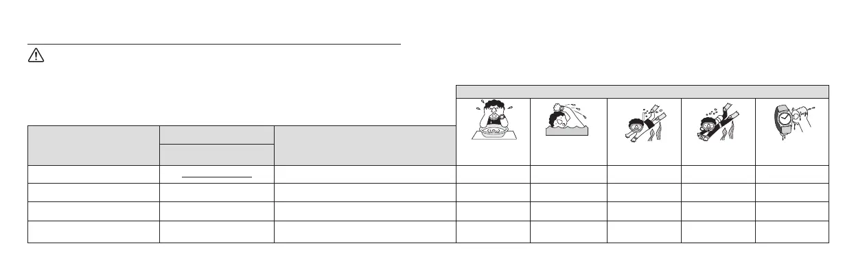 e following chart provides examples of use for reference to ensure that your watch is used properly.