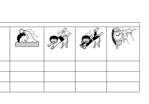 resistance of your watch, as indicated on the dial and case, and consult the table.