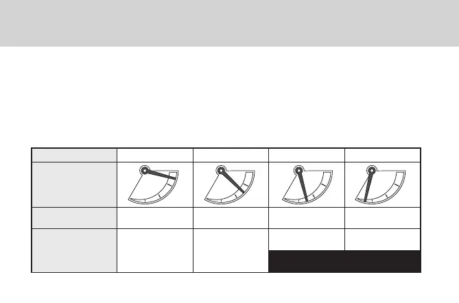The needle position of the power reserve indicator shows the power reserve amount, as illustrated below.
