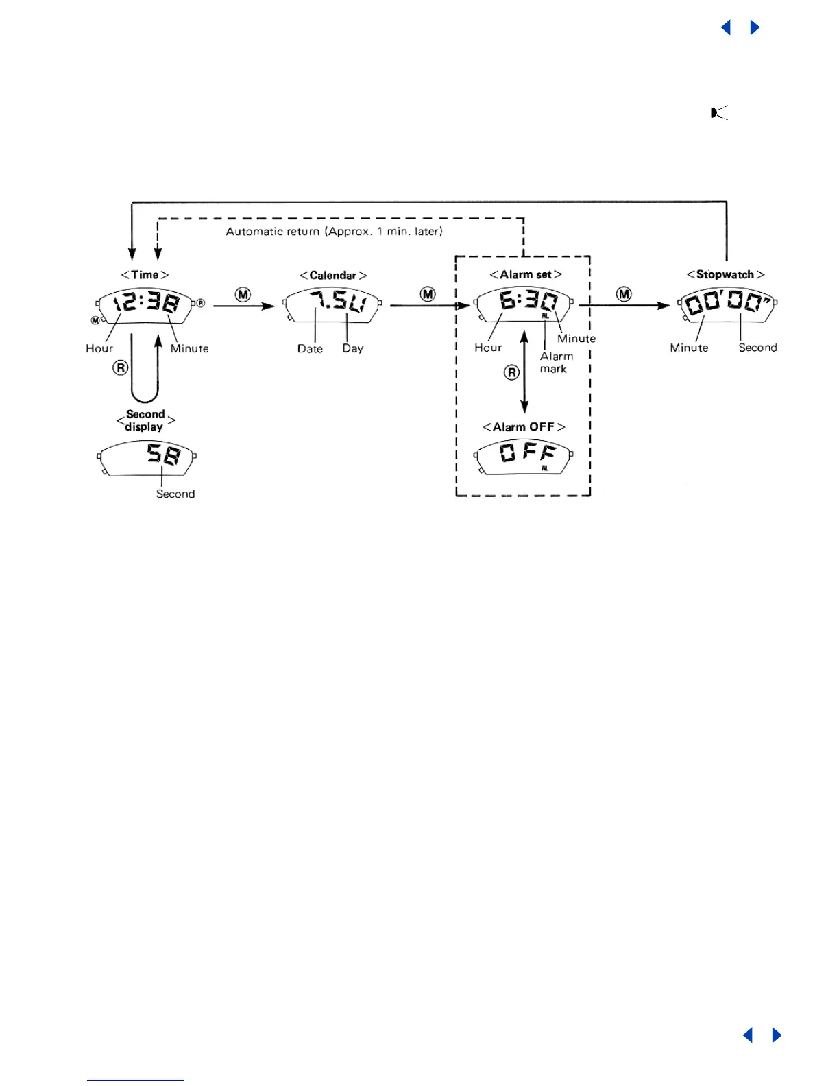 about 1 minute, the time display will automatically return and replace the