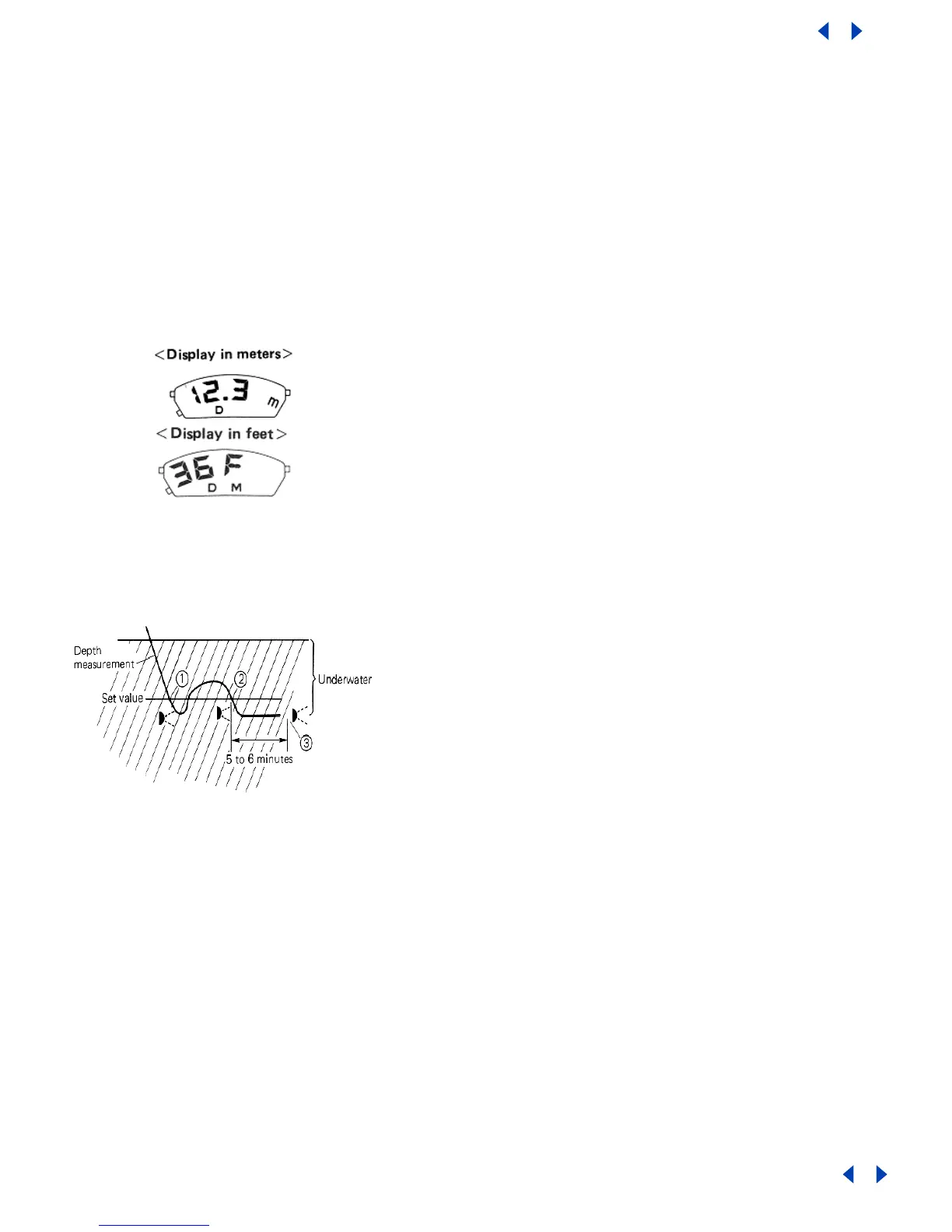 When more than 1m (3ft) of depth is measured, the maximum depth memory mode