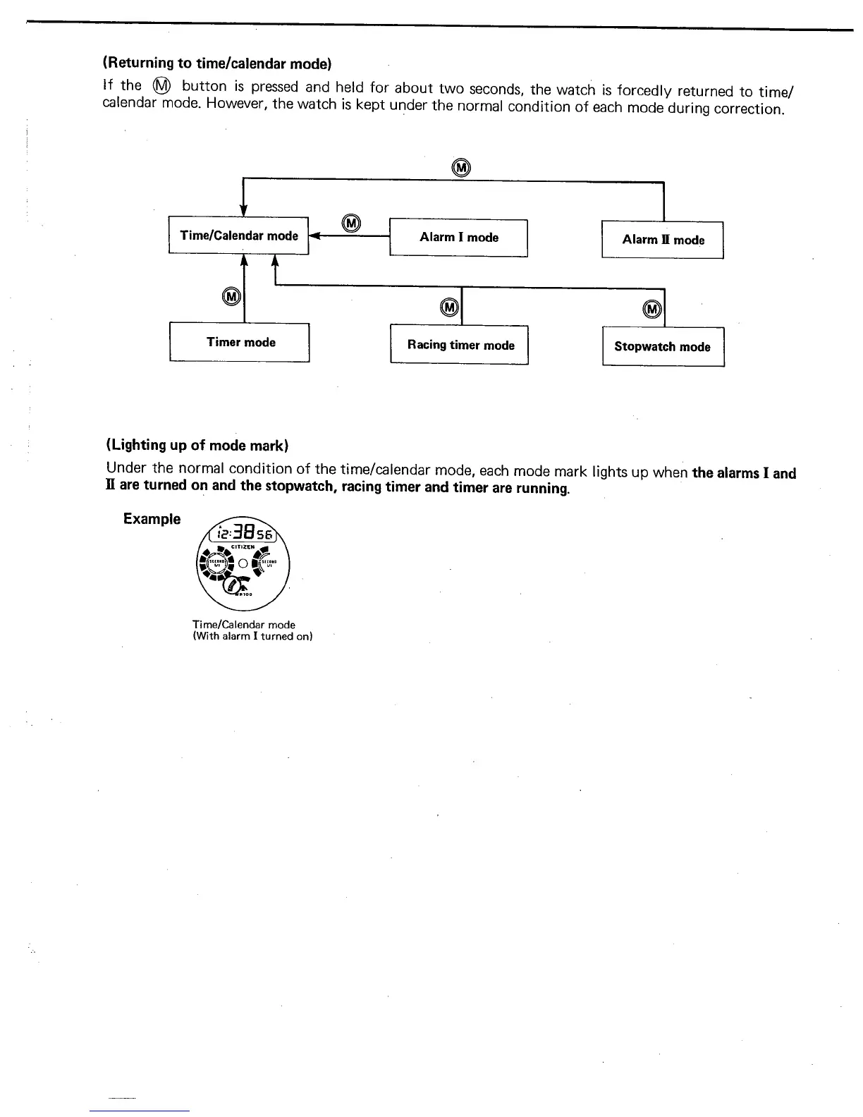 Citizen C050 - Returning to Time;Calendar Mode; Lighting up of Mode Mark
