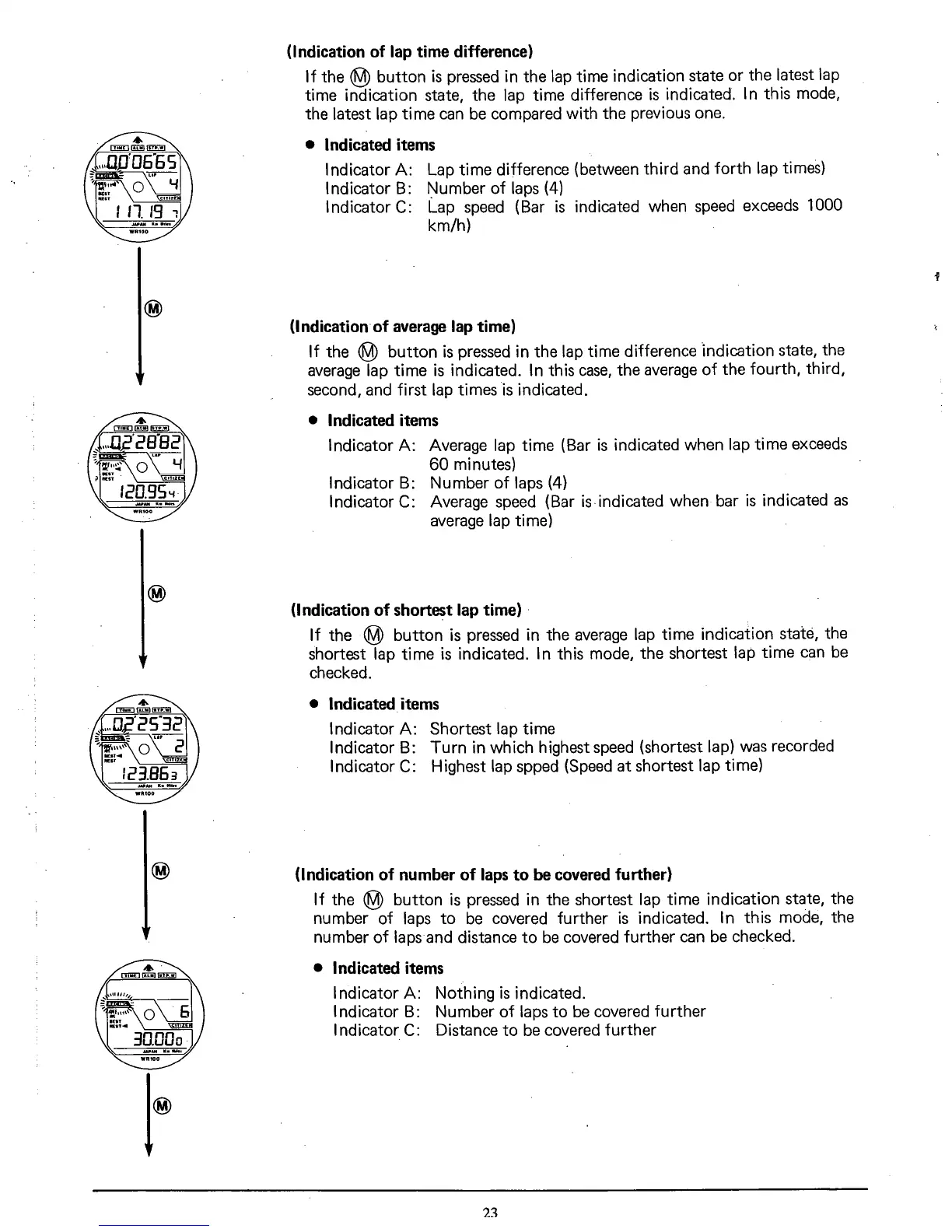Citizen C070 - Indication of Lap Time Difference; Indication of Average Lap Time; Indication of Shortest Lap Time; Indication of Number of Laps to be Covered Further