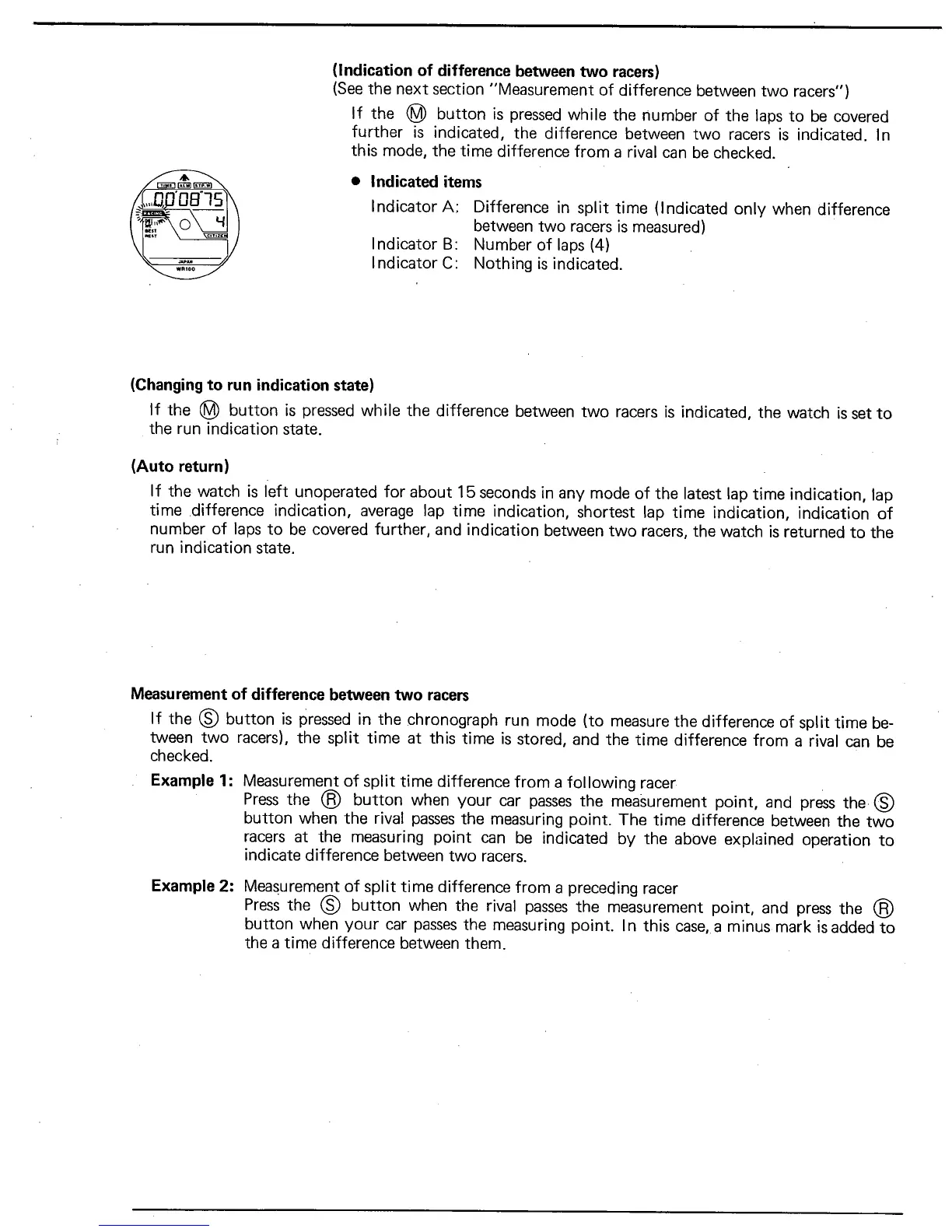 Citizen C070 - Indication of Difference between Two Racers; Changing to Run Indication State; Measurement of Difference between Two Racers