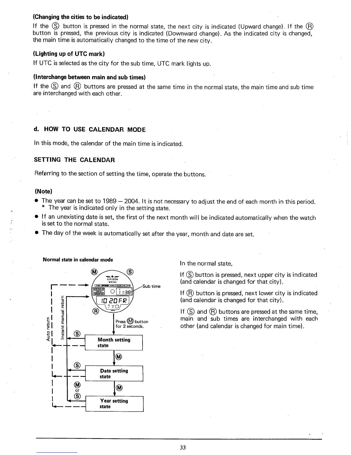 Citizen C070 - d. HOW TO USE CALENDAR MODE