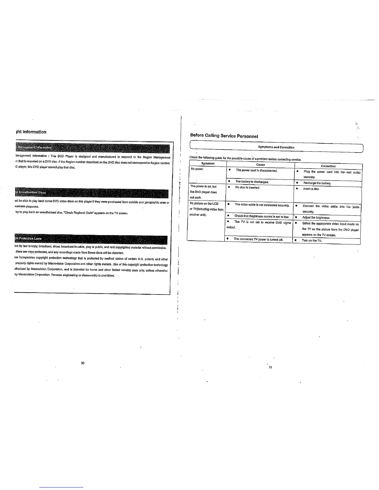 Citizen C07PDV12 - Copyright and Troubleshooting; Copyright and Regional Code Information; Before Calling Service Personnel