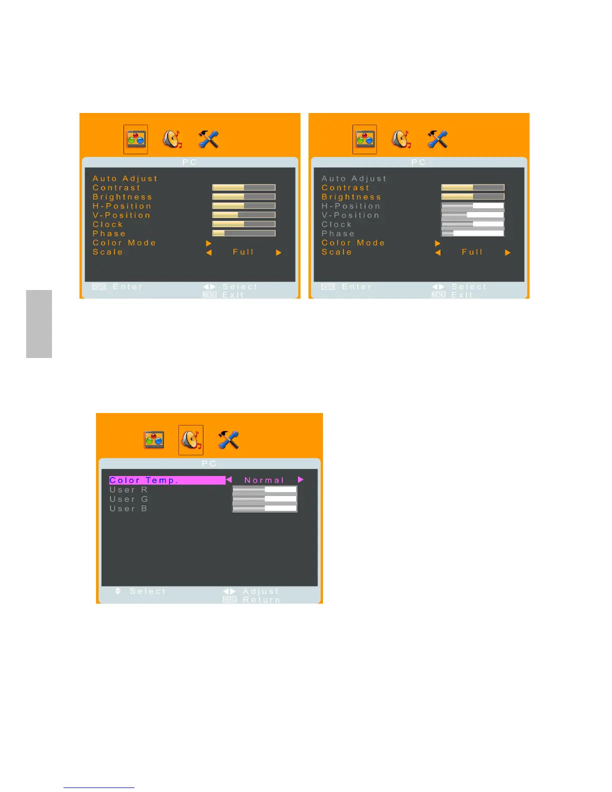 2. Use ◄► to select between Normal, Warm, Cool, sRGB, and User.