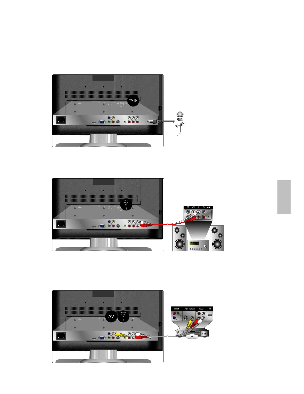 Connecter le terminal de sortie audio de la TV LCD au terminal d'entrée audio du système stéréo