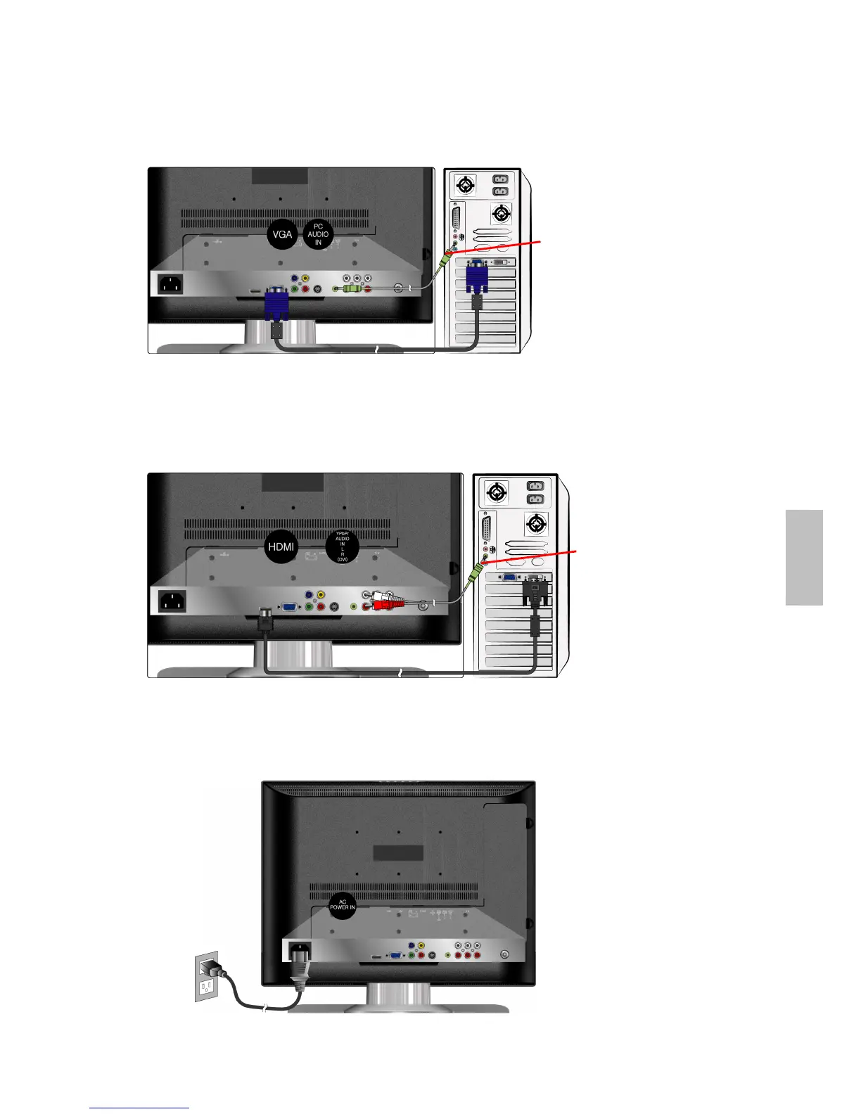 audio de votre ordinateur au terminal d'entrée audio (rouge/blanc) de la TV LCD.