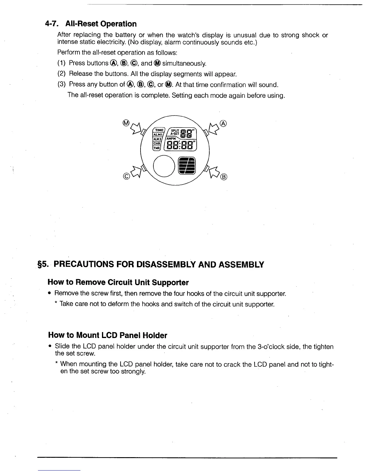 Citizen C350 - Performing an All-Reset Operation; Precautions for Watch Disassembly and Assembly; Removing the Circuit Unit Supporter; Mounting the LCD Panel Holder