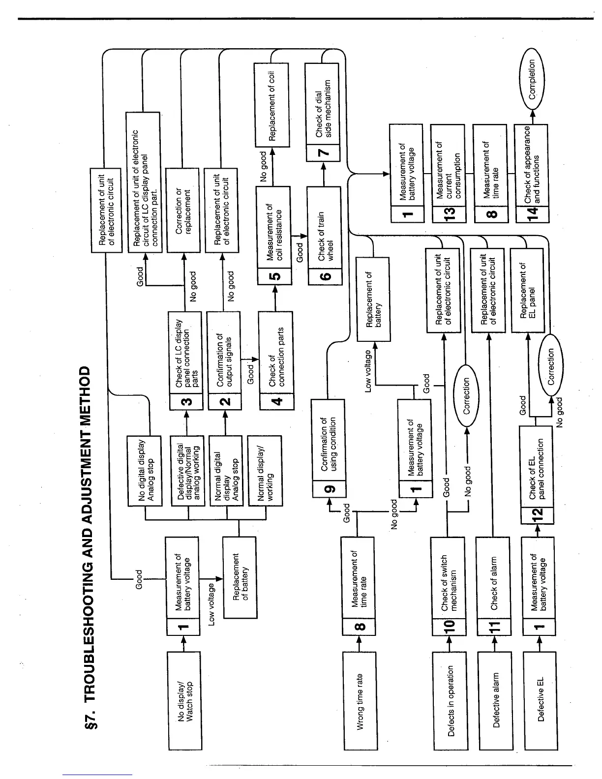 Citizen C350 - Troubleshooting and Adjustment Methods; Measure Battery Voltage; Digital and Analog Display Issues; LC Display Panel Connection Check