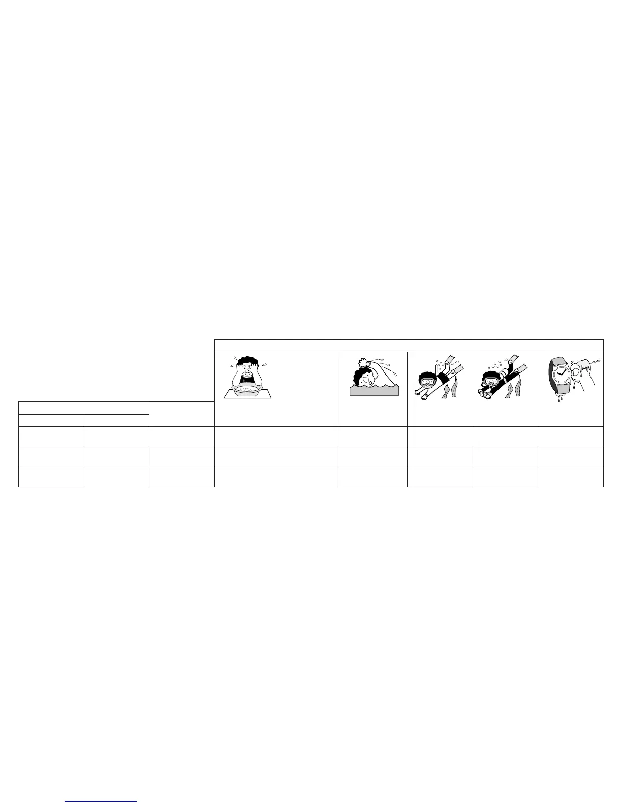 resistance of your watch, as indicated on the dial and case, and consult the table.