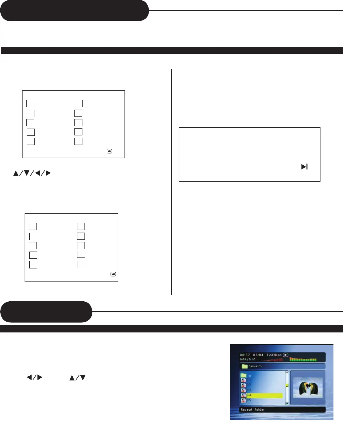 MP3 folders (group of MP3 songs) and files (songs) to select which ones you