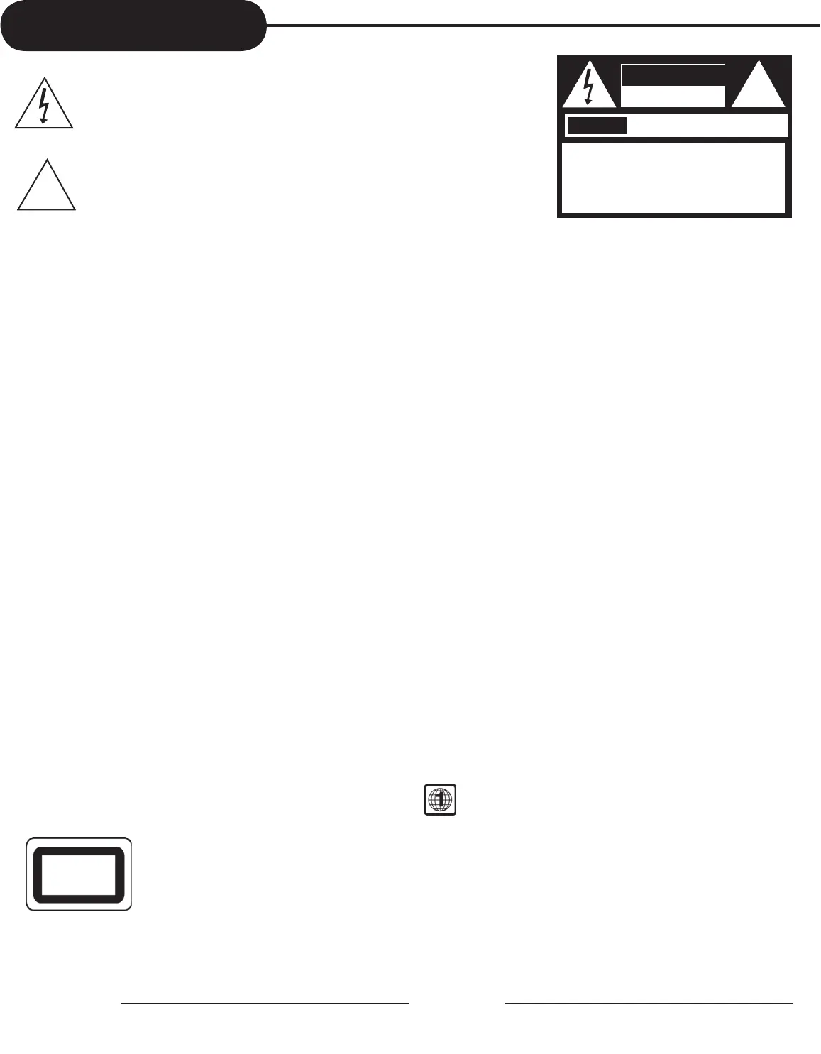 UN SÉRIEUX RISQUE D’ÉLECTROCUTION. POUR ÉVITER TOUT RISQUE D’