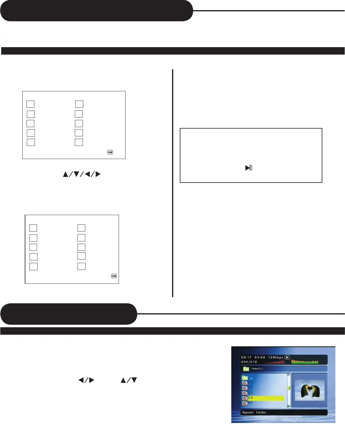 le répertoire sera affiché dans un menu MP3 à l’écran de votre téléviseur.