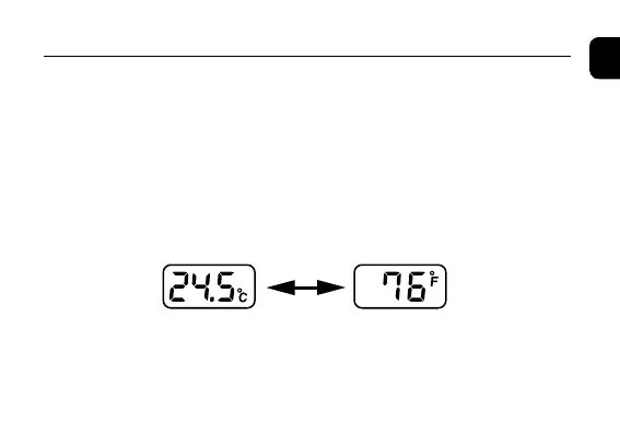 . The temperature display changes from centigrade (°C) to Fahrenheit (°F)