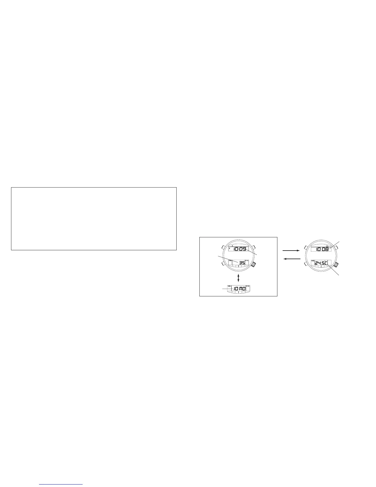 • Temperature and barometric pressure are displayed for 3 minutes when but-