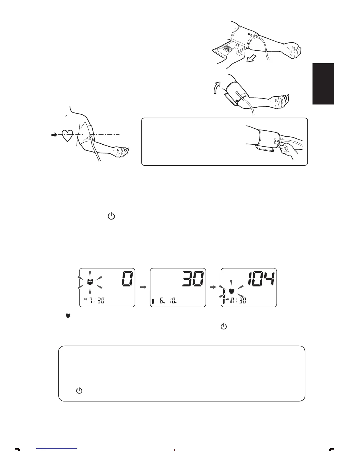 3 Place the cuff at the height of the heart.